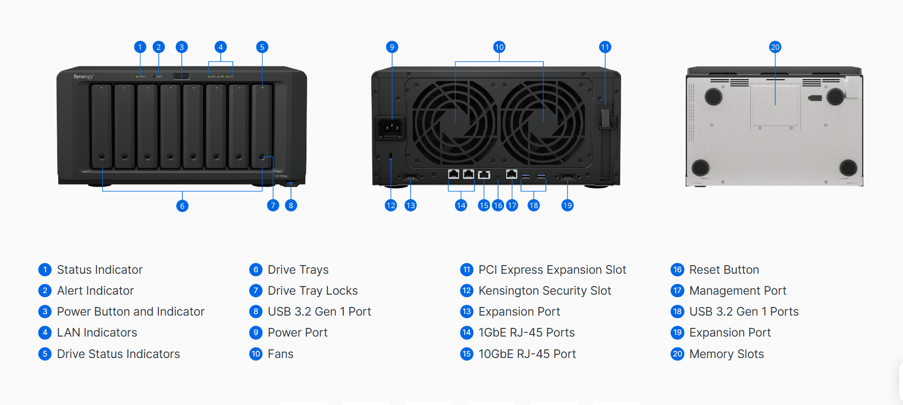 | Lưu trữ | Khay ổ đĩa: 8 Số khay ổ đĩa tối đa với thiết bị mở rộng: 18 (DX517 x 2) Khe ổ đĩa M.2: 2 (NVMe) |