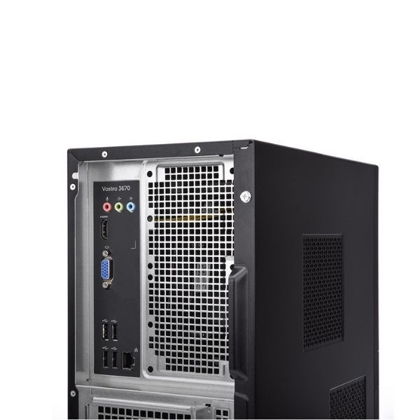 Máy tính để bàn Dell Vostro 3670MT được thiết kế nhỏ gọn, màu đen cùng hoa văn tinh tế, sản phẩm làm đẹp thêm không gian làm việc của bạn.